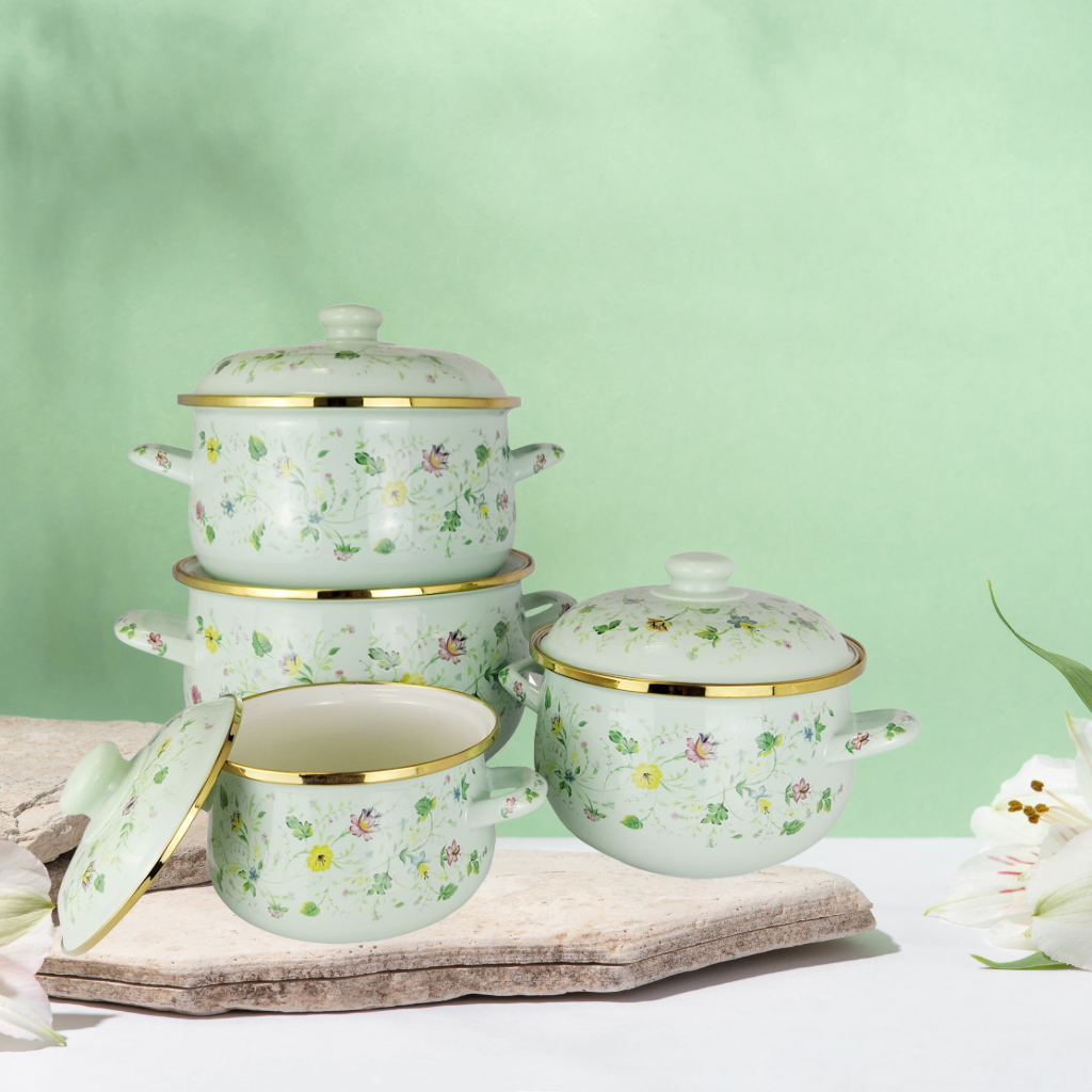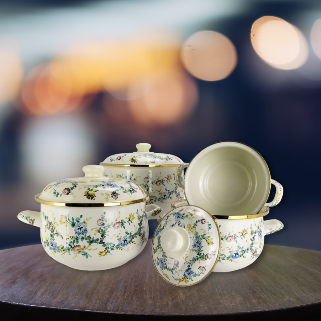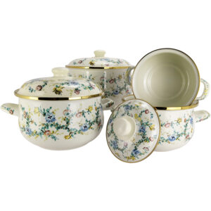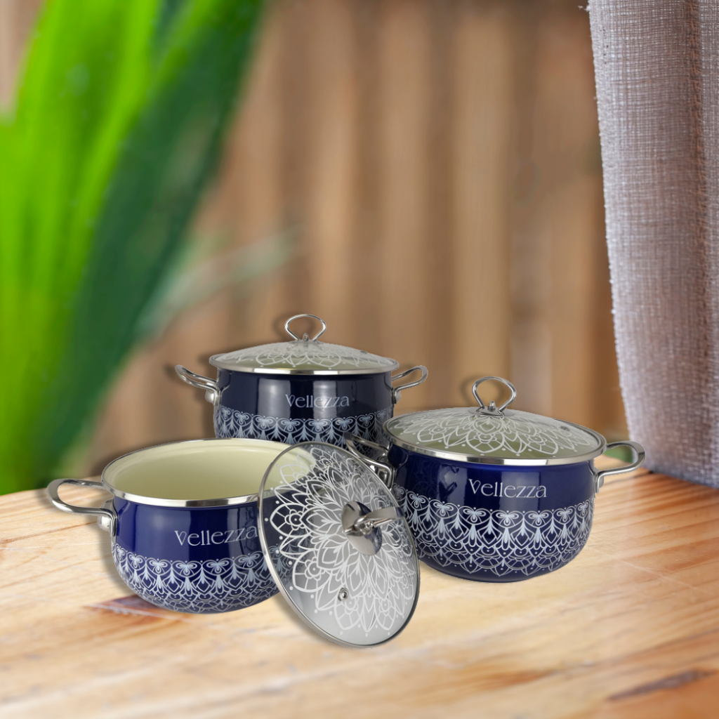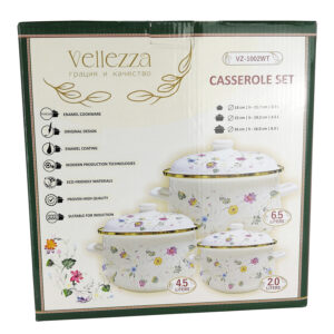 A special feature of the VELLEZZA brand is the ability to select dishes according to style and design from different lines. So, for enamel utensils – pots, teapots, etc. – it is possible to choose porcelain tea or dinner sets in the same color scheme, with the same pattern and in the same design – decoration. Our company’s specialists carry out careful selection of manufacturers and quality control at enterprises that have the most modern equipment and technologies.